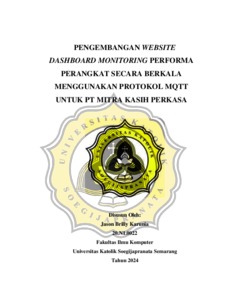 KARUNIA, JASON BRILLY (2024) PENGEMBANGAN WEBSITE DASHBOARD MONITORING PERFORMA PERANGKAT SECARA BERKALA MENGGUNAKAN PROTOKOL MQTT UNTUK PT MITRA KASIH PERKASA. S1 thesis, UNIVERSITAS KATOLIK SOEGIJAPRANATA.