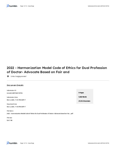 Turnitin - 2022 - Harmonization Model Code of Ethics for Dual Profession of Doctor- Advocate Based on Fair and Civilized Humanity Values.pdf Download (646kB) | Preview |