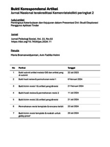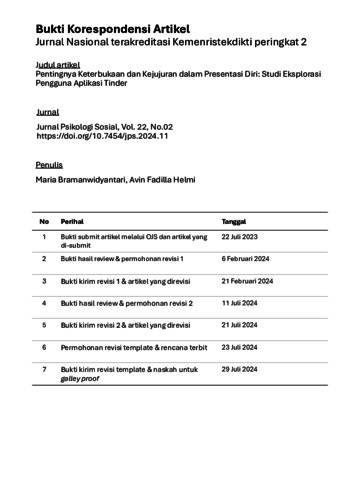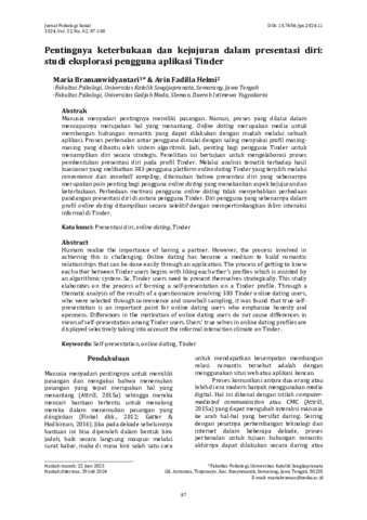 Bramanwidyantari, Maria and Helmi, Avin Fadilla Pentingnya keterbukaan dan kejujuran dalam presentasi diri: studi eksplorasi pengguna aplikasi Tinder. Jurnal Psikologi Sosial.