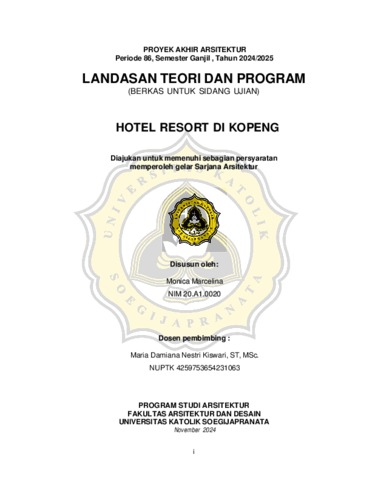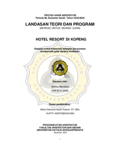 MARCELINA, MONICA (2024) HOTEL RESORT DI KOPENG. S1 thesis, UNIVERSITAS KATOLIK SOEGIJAPRANATA.