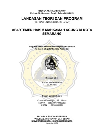 ARDI, EXALDO NATHANAEL (2024) APARTEMEN HAKIM MAHKAMAH AGUNG DI KOTA SEMARANG. S1 thesis, UNIVERSITAS KATOLIK SOEGIJAPRANATA.