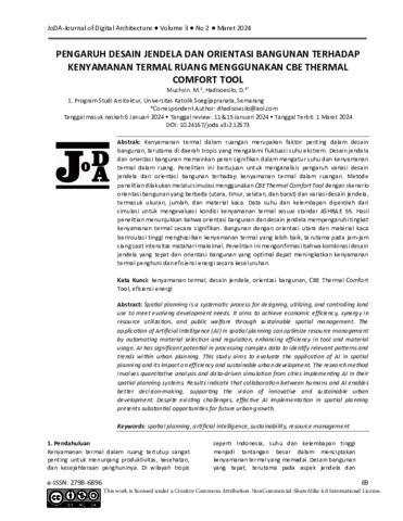 Muchsin. M., Muchsin and Hadisoesilo. D, Hadisoesilo (2024) PENGARUH DESAIN JENDELA DAN ORIENTASI BANGUNAN TERHADAP KENYAMANAN TERMAL RUANG MENGGUNAKAN CBE THERMAL COMFORT TOOL. JoDA Journal of Digital Architecture, 3 (2). pp. 69-75. ISSN ISSN 2798-6896
