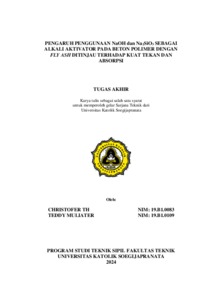HERLAMBANG, CHRISTOFER TRIWIDIANTO and MULIATER, TEDDY (2024) PENGARUH PENGGUNAAN NaOH dan Na2SiO3 SEBAGAI ALKALI AKTIVATOR PADA BETON POLIMER DENGAN FLY ASH DITINJAU TERHADAP KUAT TEKAN DAN ABSORPSI. S1 thesis, UNIVERSITAS KATOLIK SOEGIJAPRANATA.