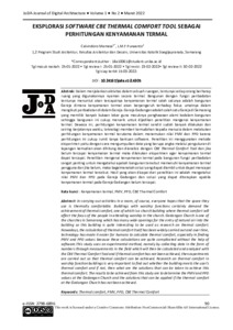 Mamesa, Calvindoro (2022) EKSPLORASI SOFTWARE CBE THERMAL COMFORT TOOL SEBAGAI PERHITUNGAN KENYAMANAN TERMAL. JoDA Journal of Digital Architecture, 1 (2). pp. 90-97. ISSN ISSN 2798-6896