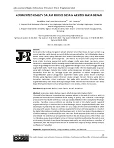 Dunia arsitektur sedang mengalami sebuah tekanan terkait hasil karya dari para arsitek yang secara kuantitas sudah banyak namun dinilai kurang secara kualitas. Hal ini disebabkan karena dalam proses desain yang dilakukan oleh arsitek ditemukan gap yang cukup lebar antara konsep dengan praktek perancangannya. Oleh karena itu banyak arsitek yang mulai melirik dunia digital terutama augmented reality sebagai media yang dapat membantu proses mendesain. Augmented Reality memang memiliki kelebihan dalam menyajikan visual 3D yang sangat berguna bagi dunia arsitektur yang juga bermain dengan visual . Namun hingga sekarang augmented reality masih hanya diaplikasikan sebagai media informasi digital pada bangunan yang telah terbangun. Padahal jika melihat perkembangannya teknologi ini mampu untuk bermanfaat lebih dari itu. Sehingga tujuan dari penelitian ini adalah menganalisa dan mengindikasikan potensi penggunaan augmented reality pada proses desain seutuhnya. Metode yang digunakan adalah literature review dengan mencari literatur yang relevan kemudian melakukan sintesi analisanya. Dan pada akhir penelitian ditemukan bahwa augmented reality tidak hanya berfungsi sebagai media informasi dari hasil desain akan tetapi dapat ditempatkan dalam semua tahapan desain yaitu analisa, sintesis dan evaluasi.