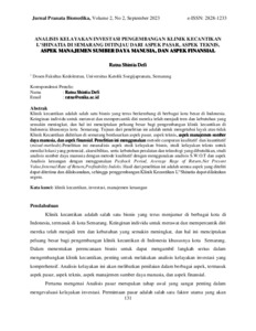 Defi, Ratna Shintia (2023) Analisis Kelayakan Investasi Pengembangan Klinik Kecantikan L'Shinatia di Semarang Ditinjau dari Aspek Pasar, Aspek Teknis, Aspek Manajemen Sumber Daya Manusia, dan Aspek Finansial. Pranata Biomedika, 2 (2). pp. 131-137. ISSN 2828-1233