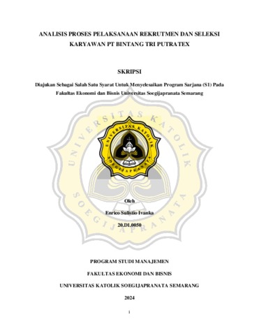 IVANKA, ENRICO SULISTIO (2024) ANALISIS PROSES PELAKSANAAN REKRUTMEN DAN SELEKSI KARYAWAN PT BINTANG TRI PUTRATEX. S1 thesis, UNIVERSITAS KATOLIK SOEGIJAPRANATA.
