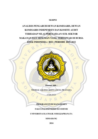 PRATAMA, THOMAS AQUINO ADITYA SENA (2024) ANALISIS PENGARUH DEWAN KOMISARIS, DEWAN KOMISARIS INDEPENDEN DAN KOMITE AUDIT TERHADAP NILAI PERUSAHAAN SUB. SEKTOR MAKANAN DAN MINUMAN YANG TERDAFTAR DI BURSA EFEK INDONESIA ( BEI ) PERIODE 2019-2022. S1 thesis, UNIVERSITAS KATOLIK SOEGIJAPRANATA.