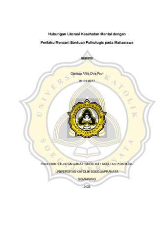 PUTRI, CLARISSA AFILIA DIVA (2025) HUBUNGAN LITERASI KESEHATAN MENTAL DENGAN PERILAKU MENCARI BANTUAN PSIKOLOGIS PADA MAHASISWA. S1 thesis, UNIVERSITAS KATOLIK SOEGIJAPRANATA SEMARANG.