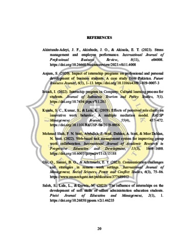 The growing competition in the workforce, especially in the developing world, underscores the importance of education in equipping individuals with the necessary skills for employment. An internship offers valuable opportunities for students to gain real-world experience and develop practical skills. The author participated in a six-month internship program at Eduhouse from August 5, 2024, to January 8, 2025. During the internship, the author worked primarily in the administration department, assisting with tasks such as organizing student data, creating report covers, and helping with classroom activities. The author also faced challenges, such as receiving tasks from multiple people and communication issues due to physical distance. These issues were addressed through clear role clarification and digital communication tools. The internship gave the author valuable teamwork, communication, and administrative skills. The experience also deepened the author's understanding of the importance of clear communication and efficient task management.