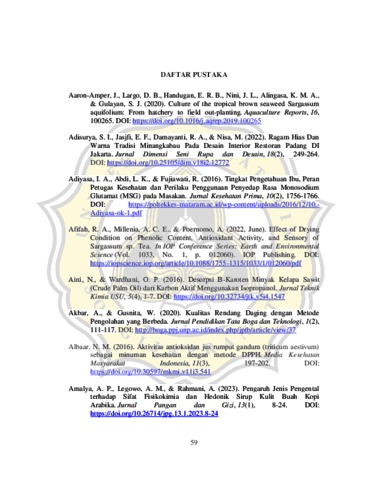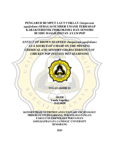 ANGELIKA, YOSEFA (2025) PENGARUH RUMPUT LAUT COKLAT (Sargassum aquifolium) SEBAGAI SUMBER UMAMI TERHADAP KARAKTERISTIK FISIKOKIMIA DAN SENSORI BUMBU BASAH INSTAN AYAM POP. S1 thesis, UNIVERSITAS KATOLIK SOEGIJAPRANATA.