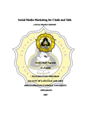 NUGROHO, EVELYN BUDI (2025) SOCIAL MEDIA MARKETING FOR CHALK AND TALK. S1 thesis, UNIVERSITAS KATOLIK SOEGIJAPRANATA.