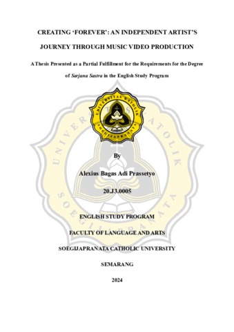 PRASSETYO, ALEXIUS BAGAS (2024) CREATING ‘FOREVER’: AN INDEPENDENT ARTIST’S JOURNEY THROUGH MUSIC VIDEO PRODUCTION. S1 thesis, UNIVERSITAS KATOLIK SOEGIJAPRANATA.