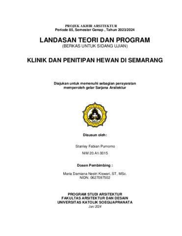 PURNOMO, STANLEY FABIAN (2024) KLINIK DAN PENITIPAN HEWAN DI SEMARANG. S1 thesis, UNIVERSITAS KATOLIK SOEGIJAPRANATA.