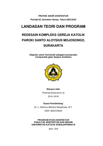 LIE, FLORENSIA ESPERANCE (2024) REDESAIN KOMPLEKS GEREJA KATOLIK PAROKI SANTO ALOYSIUS MOJOSONGO, SURAKARTA. S1 thesis, UNIVERSITAS KATOLIK SOEGIJAPRANATA.