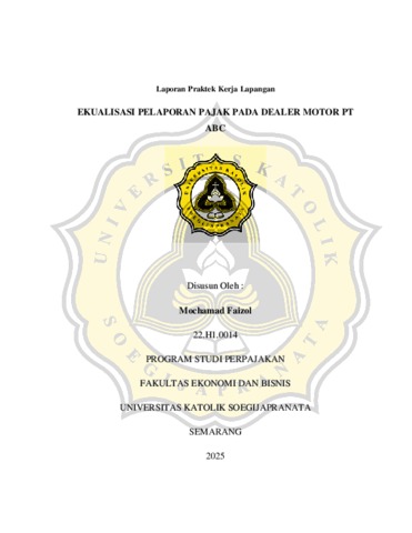 FAIZOL, MOCHAMAD EKUALISASI PELAPORAN PAJAK PADA DEALER MOTOR PT ABC. Project Report. UNIVERSITAS KATHOLIK SOEGIJAPRANATA SEMARANG. (Unpublished)