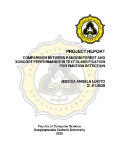 LUKITO, JESSICA ANGELA (2025) COMPARISON BETWEEN RANDOM FOREST AND XGBOOST PERFORMANCE IN TEXT CLASSIFICATION FOR EMOTION DETECTION. S1 thesis, UNIVERSITAS KATOLIK SOEGIJAPRANATA.