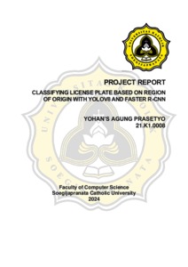 PRASETYO, YOHAN'S AGUNG (2025) CLASSIFYING LICENSE PLATE BASED ON REGION OF ORIGIN WITH YOLOV8 AND FASTER R-CNN. S1 thesis, UNIVERSITAS KATOLIK SOEGIJAPRANATA SEMARANG.