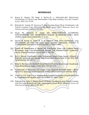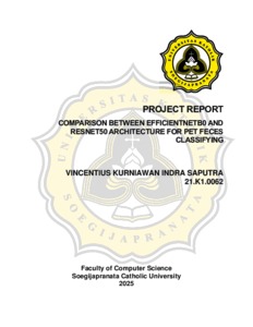 SAPUTRA, VINCENTIUS KURNIAWAN INDRA (2025) COMPARISON BETWEEN EFFICIENTNETB0 AND RESNET50 ARCHITECTURE FOR PET FECES CLASSIFYING. S1 thesis, UNIVERSITAS KATOLIK SOEGIJAPRANATA SEMARANG.