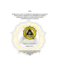 SUARLEMBIT, EGEINSIA MERLYN (2025) PEMBUATAN VISUM ET REPERTUM (VER) SEBAGAI ALAT BUKTI TINDAK PIDANA TERHADAP ANAK PEREMPUAN KORBAN KEKERASAN SEKSUAL (STUDI DI RSUD MASOHI, KABUPATEN MALUKU TENGAH). S2 thesis, UNIVERSITAS KATOLIK SOEGIJAPRANATA.
