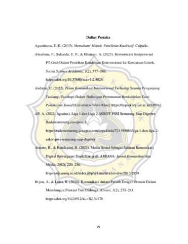 UBAIDILLAH, MUHAMAD ARIEL (2025) ANALISIS DINAMIKA KOMUNIKASI INTERPERSONAL ANTARA PELATIH DAN PEMAIN KLUB UNIKA FC MENGGUNAKAN TEORI PERTUKARAN SOSIAL. S1 thesis, UNIVERSITAS KATOLIK SOEGIJAPRANATA.