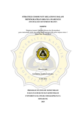 SAHARA, RAVEENA ALIFIA (2025) STRATEGI COMMUNITY RELATIONS DALAM MENINGKATKAN BRAND AWARENESS (STUDI KASUS SEVENHUB TRANS7). S1 thesis, UNIVERSITAS KATOLIK SOEGIJAPRANATA.