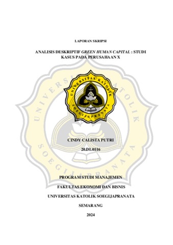 PUTRI, CINDY CALISTA (2024) ANALISIS DESKRIPTIF GREEN HUMAN CAPITAL : STUDI KASUS PADA PERUSAHAAN X. S1 thesis, UNIVERSITAS KATOLIK SOEGIJAPRANATA.
