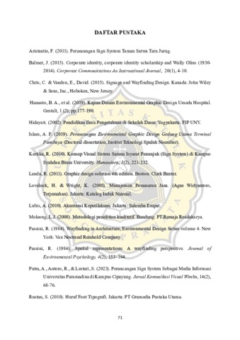 Soegijapranata Catholic University merupakan kampus terbaik di Jawa Tengah yang dikenal oleh mata publik hingga international karena telah melakukan pengembangan dan pembaruan fasilitas kampus secara berkala. Perancangan Standarisasi Sign System Soegijapranata Catholic University merupakan sebuah perancangan yang membantu para segenap civitas akademika dalam maupun luar dikarenakan tidak adanya standar yang jelas pada sign system sehingga informasi yang terdapat didalamnya sulit dipahami oleh para civitas maupun pengunjung yang datang ke Kampus SCU. Dengan adanya sign system yang sudah terstandarisasi dengan baik dan berhasil dioperasikan dapat membantu para segenap civitas akademika maupun pengunjung yang hendak berkegiatan didalamnya serta dapat memperkuat identitas yang telah dimiliki oleh Kampus SCU sendiri.