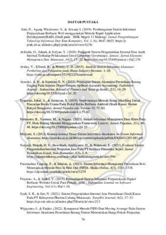 CV. Cahaya Terang Metalindo adalah sebuah perusahaan barang dagang di bidang bahan bangunan, yang selama ini masih menjalankan proses bisnisnya secara manual, mencakup pencatatan dan pengelolaan data operasionalnya. Berdasarkan wawancara dengan pemilik perusahaan, sistem manual ini mulai menunjukkan kelemahan, seperti kesalahan pencatatan, lamanya dalam pencarian data, dan keterlambatan dalam pembuatan laporan keuangan. Oleh karena itu, penelitian ini bertujuan untuk mengembangkan sistem informasi akuntansi berbasis website untuk meningkatkan efisiensi dan efektivitas pengelolaan penjualan, pembelian, persediaan barang dagang yang sudah diterapkan metode penilaian persediaan FIFO, dan laporan keuangan yang mencakup laporan posisi keuangan dan laporan laba rugi di CV. Cahaya Terang Metalindo. Pengembangan sistem menggunakan metode Rapid Application Development (RAD), yang dipilih karena keunggulannya dalam melibatkan pengguna secara langsung dan memungkinkan perancangan yang lebih cepat dan responsif terhadap kebutuhan pengguna.
