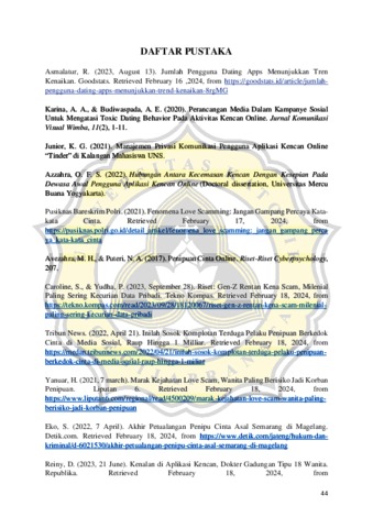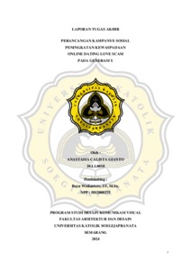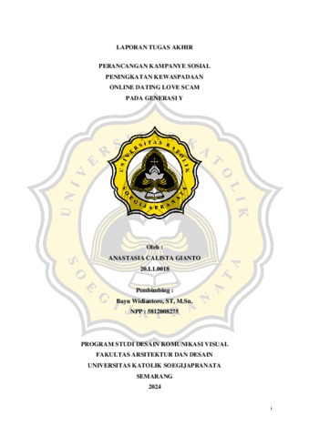 GIANTO, ANASTASIA CALISTA (2024) PERANCANGAN KAMPANYE SOSIAL PENINGKATAN KEWASPADAAN ONLINE DATING LOVE SCAM PADA GENERASI Y. S1 thesis, UNIVERSITAS KATOLIK SOEGIJAPRANATA.
