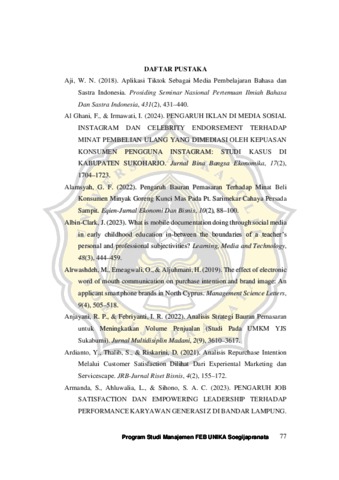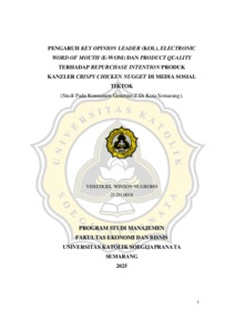 NUGROHO, YEHEZKIEL WINSON (2025) PENGARUH KEY OPINION LEADER (KOL), ELECTRONIC WORD OF MOUTH (E-WOM) DAN PRODUCT QUALITY TERHADAP REPURCHASE INTENTION PRODUK KANZLER CRISPY CHICKEN NUGGET DI MEDIA SOSIAL TIKTOK. S1 thesis, UNIVERSITAS KATOLIK SOEGIJAPRANATA.