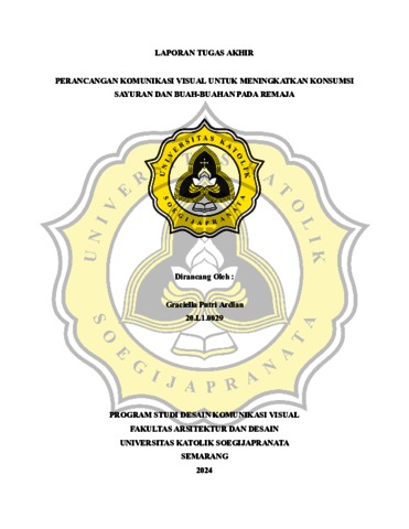 ARDIAN, GRACIELLA PUTRI (2024) PERANCANGAN KOMUNIKASI VISUAL UNTUK MENINGKATKAN KONSUMSI SAYURAN DAN BUAH-BUAHAN PADA REMAJA. S1 thesis, UNIVERSITAS KATOLIK SOEGIJAPRANATA.
