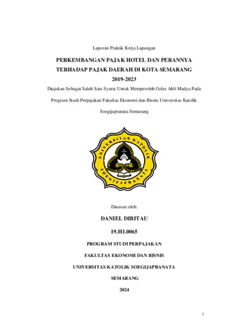 DIBITAU, DANIEL (2024) PERKEMBANGAN PAJAK HOTEL DAN PERANNYA TERHADAP PAJAK DAERAH DI KOTA SEMARANG 2019-2023. Project Report. UNIVERSITAS KATHOLIK SOEGIJAPRANATA.