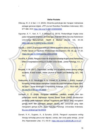 Mahasiswa dituntut untuk berpikir kritis, mandiri, bertanggung jawab, beradaptasi, dan mendapatkan nilai yang stabil. Hal tersebut menjadi penyebab tekanan yang memicu stres mahasiswa. Stres merupakan perasaan terganggu atau terancam yang muncul akibat adanya tuntutan dan perbedaan antara harapan dan kenyataan yang dapat memengaruhi individu. Pada beberapa penelitian menunjukkan expressive writing menjadi salah satu aktivitas untuk mereduksi stres. Dengan demikian, penelitian ini bertujuan untuk mengetahui penggunaan metode expressive writing untuk menurunkan tingkat stres pada mahasiswa tingkat akhir. Desain penelitian ini adalah quasi ekserimen dengan pretest-posttest control group design. Proses pencarian partisipan dilaksanakan dengan wawancara berdasarkan skala DASS-42. Pengambilan data akan dilaksanakan selama tujuh hari dengan hari pertama dan ketujuh pemberian skala DASS-42 dan hari kedua hingga keenam pemberian perlakuan menulis. Penelitian ini dilaksanakan di Universitas Katolik Soegijapranata. Intervensi kelompok eksperimen akan diberi pelakuan menulis selama lima hari dengan durasi masingmasing 20 menit, sedangkan kelompok kontrol tidak diberi perlakuan apapun. Analisis data menggunakan uji Mann Whiney yang menunjukan hasil nilai signifikansi sebesar 0.002 (p<0.05). Artinya, terdapat perbedaan yang signifikan antara kelompok eskperimen dan kelompok kontrol yang ditunjukkan dengan nilai rata-rata kelompok eksperimen lebih tinggi daripada kelompok kontrol.