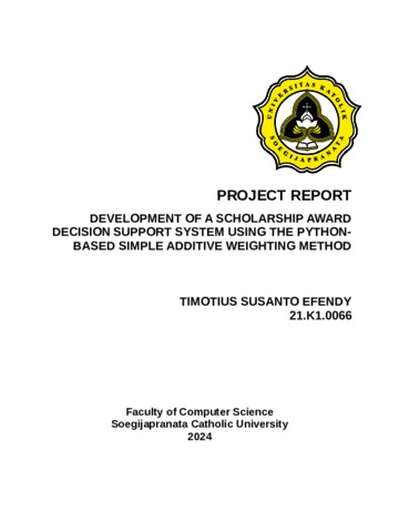 EFENDY, TIMOTIUS SUSANTO (2024) DEVELOPMENT OF A SCHOLARSHIP AWARD DECISION SUPPORT SYSTEM USING THE PYTHON BASED SIMPLE ADDITIVE WEIGHTING METHOD. S1 thesis, UNIVERSITAS KATOLIK SOEGIJAPRANATA.