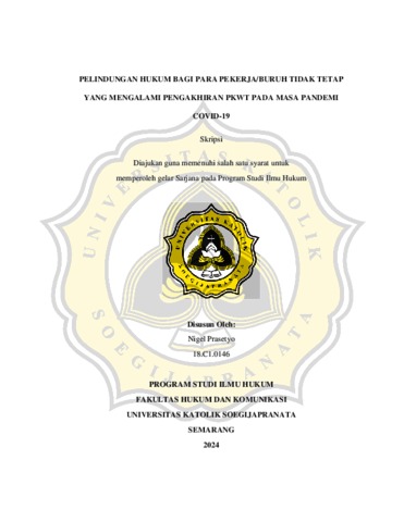 PRASETYO, NIGEL (2024) PELINDUNGAN HUKUM BAGI PARA PEKERJA/BURUH TIDAK TETAP YANG MENGALAMI PENGAKHIRAN PKWT PADA MASA PANDEMI COVID-19. S1 thesis, UNIVERSITAS KATOLIK SOEGIJAPRANATA SEMARANG.