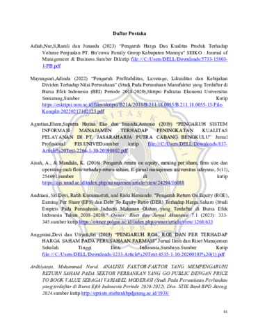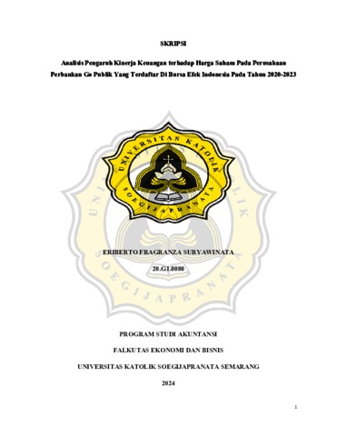 SURYAWINATA, ERIBERTO FRAGRANZA (2024) ANALISIS PENGARUH KINERJA KEUANGAN TERHADAP HARGA SAHAM PADA PERUSAHAAN PERBANKAN GO PUBLIK YANG TERDAFTAR DI BURSA EFEK INDONESIA PADA TAHUN 2020 - 2023. S1 thesis, UNIVERSITAS KATOLIK SOEGIJAPRANATA.