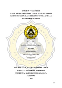 NINGRUM, YOSEPHINE ASTRIED PRASETYA (2024) PERANCANGAN KOMUNIKASI VISUAL PENGENALAN LAGU DAERAH MENGGUNAKAN MEDIA BUKU INTERAKTIF BAGI SISWA SEKOLAH DASAR. S1 thesis, UNIVERSITAS KATOLIK SOEGIJAPRANATA.