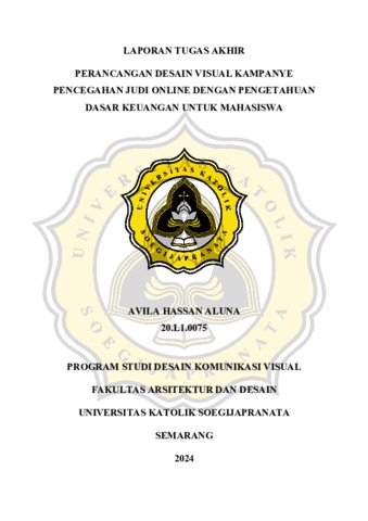 ALUNA, AVILA HASSAN (2024) PERANCANGAN DESAIN VISUAL KAMPANYE PENCEGAHAN JUDI ONLINE DENGAN PENGETAHUAN DASAR KEUANGAN UNTUK MAHASISWA. S1 thesis, UNIVERSITAS KATOLIK SOEGIJAPRANATA.