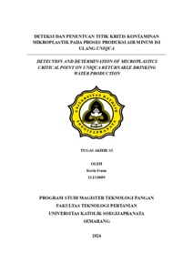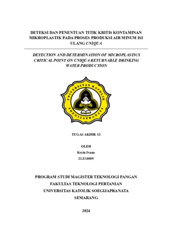 IVANA, KEZIA (2024) DETEKSI DAN PENENTUAN TITIK KRITIS KONTAMINAN MIKROPLASTIK PADA PROSES PRODUKSI AIR MINUM ISI ULANG UNIQUA. S2 thesis, UNIVERSITAS KATOLIK SOEGIJAPRANATA.