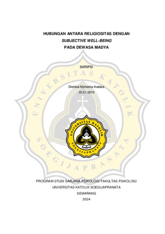 AVATARA, DIONISIA MAHESTRA (2024) HUBUNGAN ANTARA RELIGIOSITAS DENGAN SUBJECTIVE WELL-BEING PADA DEWASA MADYA. S1 thesis, UNIVERSITAS KATOLIK SOEGIJAPRANATA.