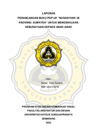 SUSANTI, YULIA (2024) PERANCANGAN BUKU POP-UP ”NUSANTARA 38 PROVINSI: SUMATRA” UNTUK MENGENALKAN KEBUDAYAAN KEPADA ANAK-ANAK. S1 thesis, UNIVERSITAS KATOLIK SOEGIJAPRANATA SEMARANG.