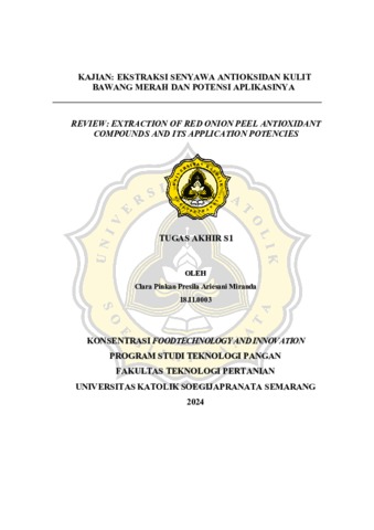 MIRANDA, CLARA PINKAN PRESILA ARIESANI (2024) KAJIAN: EKSTRAKSI SENYAWA ANTIOKSIDAN KULIT BAWANG MERAH DAN POTENSI APLIKASINYA. S1 thesis, UNIVERSITAS KATOLIK SOEGIJAPRANATA SEMARANG.