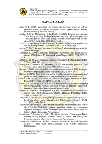 WIJAYA, THE MICHELL ADIPUTRA and SYAH, BUNGA ALAMMANDA (2025) ANALISIS TINGKAT KEPUASAN PENGGUNA JASA TRANSPORTASI BUS TRANS SEMARANG TERHADAP KINERJA PELAYANAN (KORIDOR V) DENGAN MENGGUNAKAN METODE CUSTOMER SATISFACTION INDEX (CSI) DAN IMPORTANCE PERFORMANCE ANALYSIS (IPA). S1 thesis, UNIVERSITAS KATOLIK SOEGIJAPRANATA.