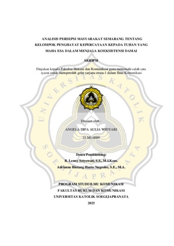 WIDYARI, ANGELA DIFA AULIA (2025) ANALISIS PERSEPSI MASYARAKAT SEMARANG TENTANG KELOMPOK PENGHAYAT KEPERCAYAAN KEPADA TUHAN YANG MAHA ESA DALAM MENJAGA KOEKSISTENSI DAMAI. S1 thesis, UNIVERSITAS KATOLIK SOEGIJAPRANATA SEMARANG.