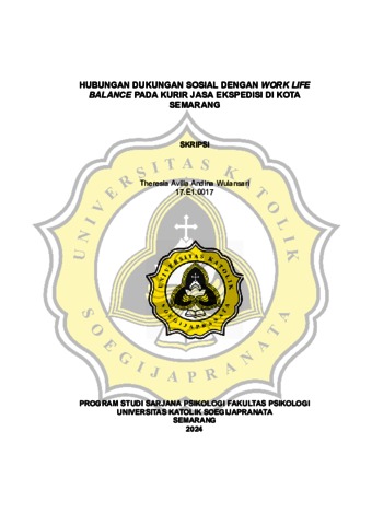 ANDINA, THERESIA AVILLA (2024) HUBUNGAN DUKUNGAN SOSIAL DENGAN WORK LIFE BALANCE PADA KURIR JASA EKSPEDISI DI KOTA SEMARANG. S1 thesis, UNIVERSITAS KATOLIK SOEGIJAPRANATA.