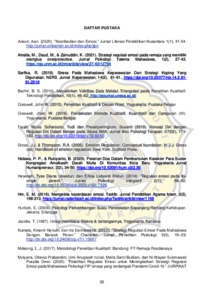 Abstrak Penelitian ini bertujuan mengetahui strategi regulasi emosi pada biarawati tingkat yuniorat Carmelite Misionaris yang menjalankan tugas kerasulan di Semarang. Metode dalam penelitian ini metode kualitatif dengan pendekatan Fenomenologi. Teknik pengumpulan data dalam penelitian ini yaitu wawancara dengan jumlah tiga partisipan yang terdiri dari satu yunior dari komunitas Kagok dengan tugas kerasulan sebagai guru dan dua dari komunitas asrama UNIKA Soegijapranata dengan tugas kerasulan sebagai pendamping asrama asramawati. Tugas -tugas ini di luar dari tugas di komunitas dan di paroki. Teknik analisis data dalam penelitian ini yaitu fenomenologi. Kredibilitas dalam penelitian ini menggunakan triangulasi sumber dan validitas komunikatif. Hasil dari penelitian ini yaitu: ketiga partisipan memiliki persamaan dalam strategi regulasi emosi antara lain yaitu (1) dapat mengendalikan perhatian dengan hobby atau hal-hal yang disukai, (2) berdoa untuk mencari ketenangan, (3) menceritakan ke pimpinan atau ke sesama anggota komunitas untuk mencari solusi, (4) berpikir positif dengan masalah yang dihadapi, (5) memendam masalah yang dihadapi. Strategi ini masuk ke dalam antecedent focused strategy (cognitive reappraisal). Kemudian untuk strategi respon focused strategy (expressive suppression), partispan belum mampu untuk menekan emosi negatif yang muncul dengan ekspresi-ekspresi yang menggambarkan emosi negatif maupun mengeluarkan kata-kata yang menyakitkan, sehingga timbul ketidaknyamanan antara partisipan dan lingkungan Kata kunci: regulasi emosi, antecedent focused strategy (cognitive reappraisal), focused strategi (expressive suppression)