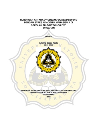 KEZIA, ADELINA GRACE (2024) HUBUNGAN ANTARA PROBLEM FOCUSED COPING DENGAN STRES AKADEMIK MAHASISWA DI SEKOLAH TINGGI TEOLOGI ”X” UNGARAN. S1 thesis, UNIVERSITAS KATOLIK SOEGIJAPRANATA.