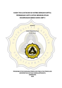PUTRI, ADELA PRAWARESTA (2025) KASIH TIKA (KATAKAN ISI HATIMU DENGAN KARTU):PERMAINAN KARTU UNTUK MENINGKATKAN KECERDASAN EMOSI SISWA SMP X. S1 thesis, UNIVERSITAS KATOLIK SOEGIJAPRANATA.