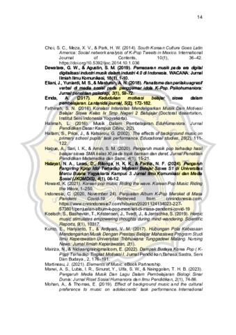 Penelitian ini dilakukan dilatarbelakangi oleh masalah siswa yang memiliki motivasi belajar yang rendah. Mendengarkan musik dapat mempengaruhi motivasi belajar siswa, dalam hal ini dikhususkan pada fenomena musik K-Pop. Metode yang digunakan adalah kuantitatif korelasional. Hipotesis dari penelitian ini adalah adanya hubungan positif antara mendengarkan musik K-Pop dengan motivasi belajar siswa. Responden dipilih dengan insidental dan snowball sampling dari populasi siswa di sebuah SMA swasta di kota Semarang. Data dikumpulkan melalui skala medengarkan musik K-Pop dan motivasi belajar, kemudian diolah dengan analisis product moment untuk mengidentifikasi hubungan kedua variabel yang ada. Hasil analisis didapat bahwa koefisien korelasi kedua variabel adalah 0,308 dan taraf signifikansi 0,001 (p < 0,05). Maka, hipotesis awal diterima dan disimpulkan bahwa mendengarkan musik K-Pop dapat meningkatkan motivasi belajar.